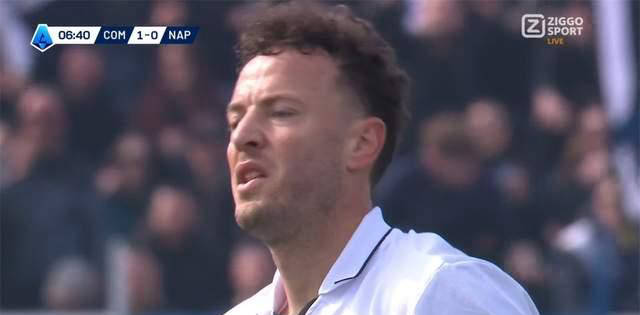 科莫球员轻而易举地收获了一个进球,他们庆祝如同白捡的一般——也许这将成为科莫队在意甲历史上最简单、最匪夷所思的进球之一……